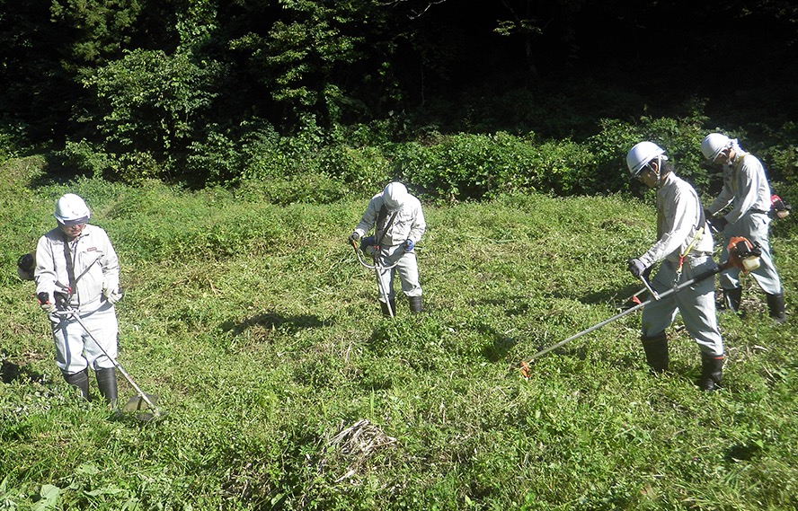 河川愛護活動として、山形市滝の平地内の集水井及び水路や天童市の国登録有形文化財・正法寺川砂防施設において、年に数回草刈り作業を実施しております。