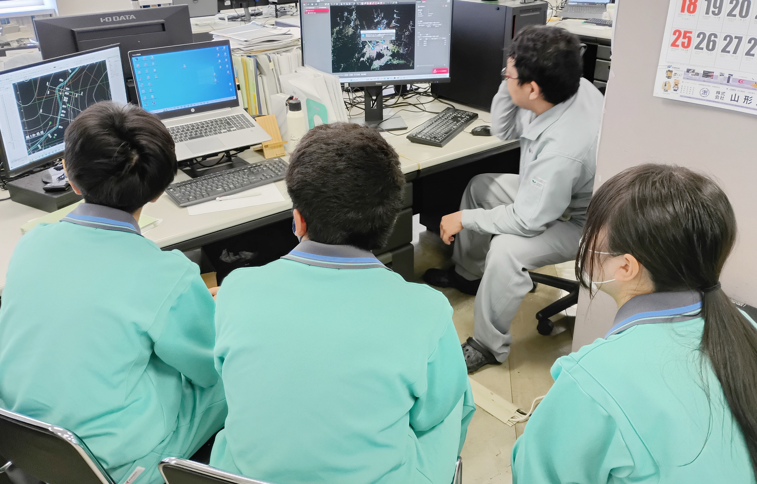 地域の学校からインターンシップを受け入れております。工事部門では現場見学を実施しており、調査部門では、土質試験のデータ入力や地質断面図などの作成、ドローンや3Dレーザースキャナーなどを使い、測量を行い3Dモデルなどの作成体験を行っています。